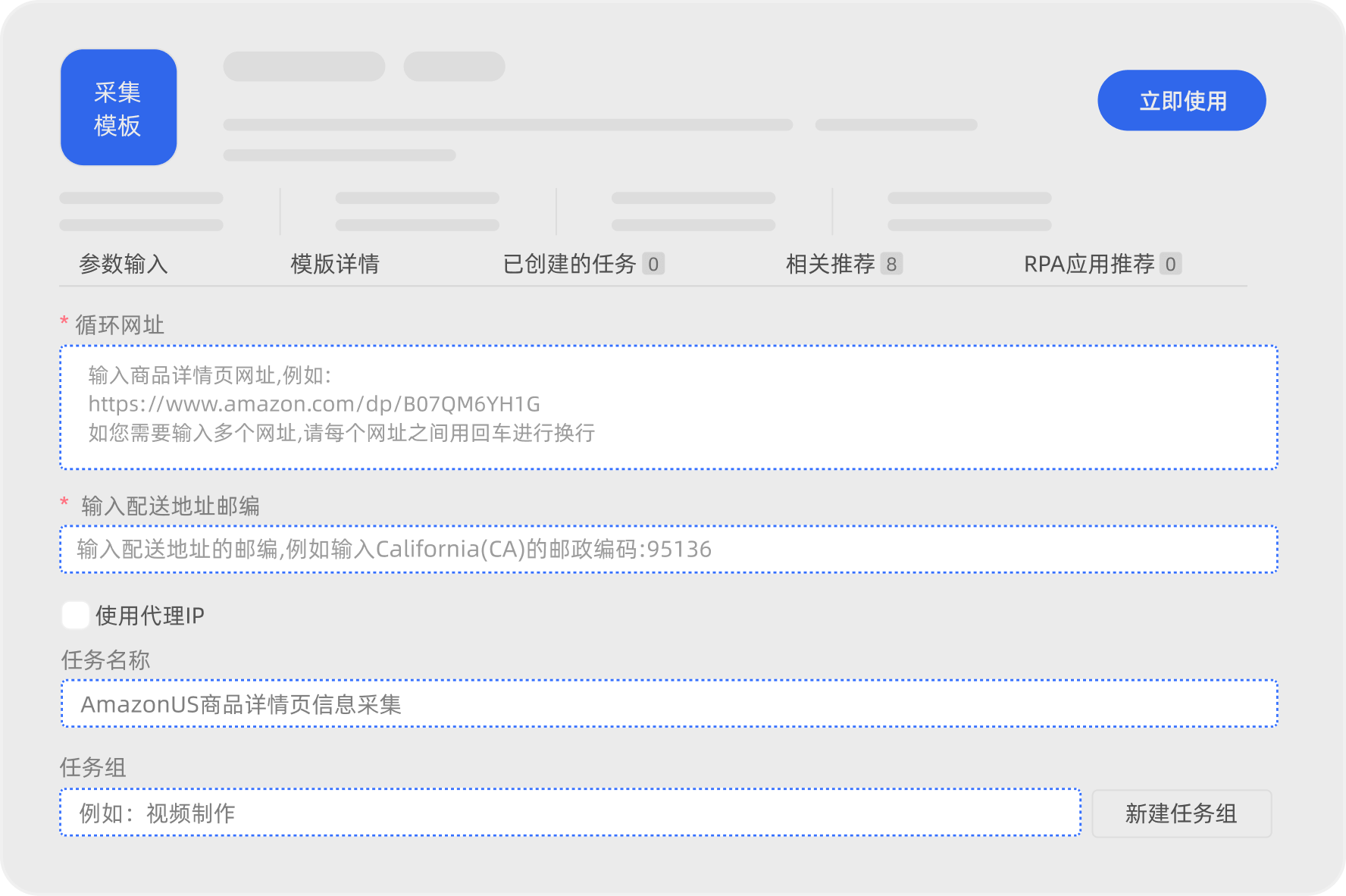 采集模板是八爪鱼采集器提供的官方预设模板,在客户端打开后,仅需输入目标网址、关键词等简单参数,几分钟内就能快速获取所需数据,无需复杂配置。 覆盖全国和地方公共资源服务平台及各垂直行业招投标平台;覆盖项目名称、项目编号、发布时间、招标主体、截止日期、招标金额等全数据场景