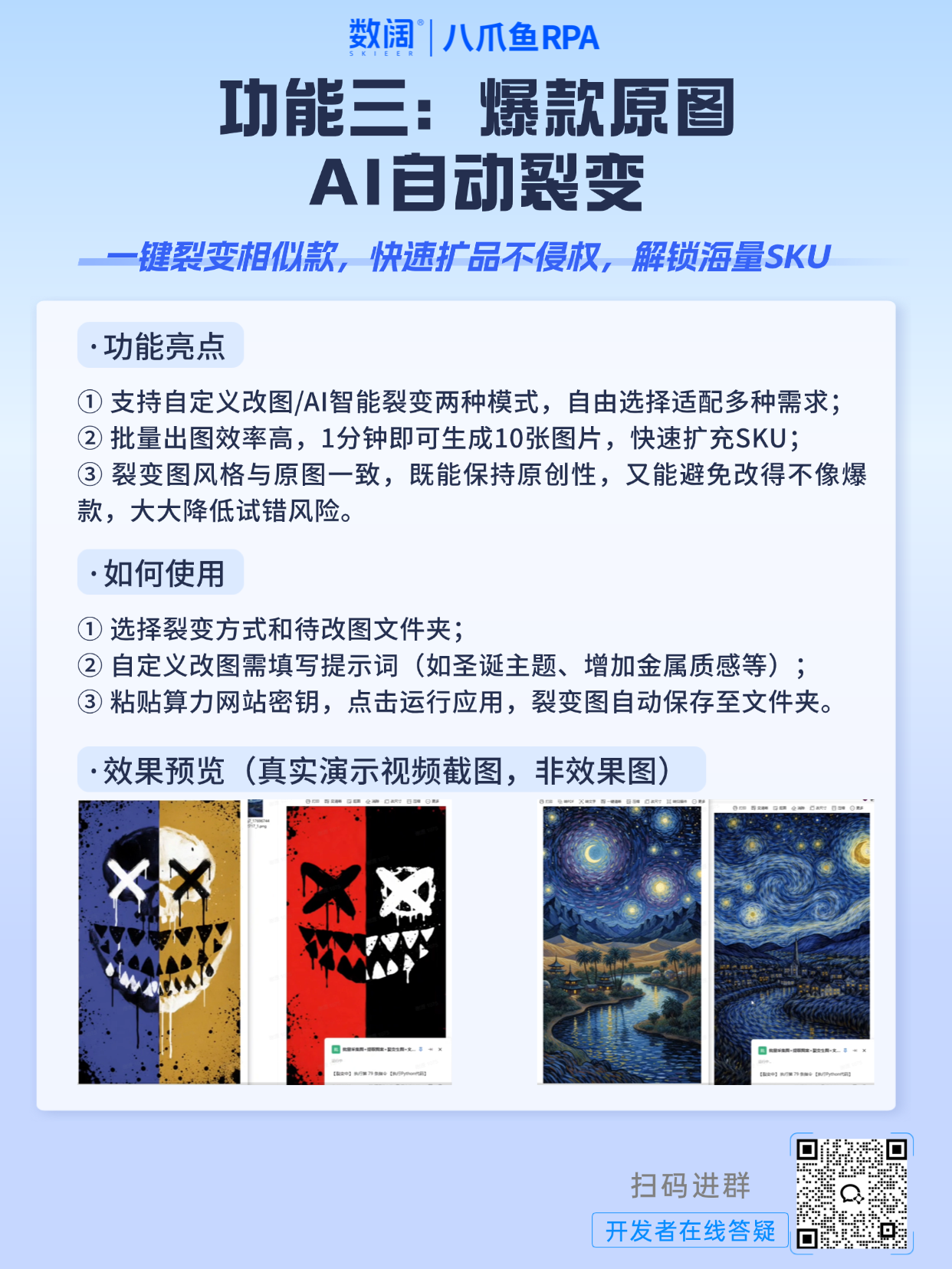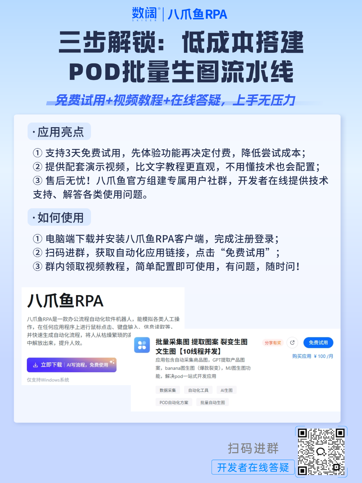 🙋 现在扫码进群,立即领取【应用演示视频 + RPA应用】,免费试用3天,解锁批量出图新玩法,轻松破解跨境POD出图困境,高效打造爆款、提升变现效率!