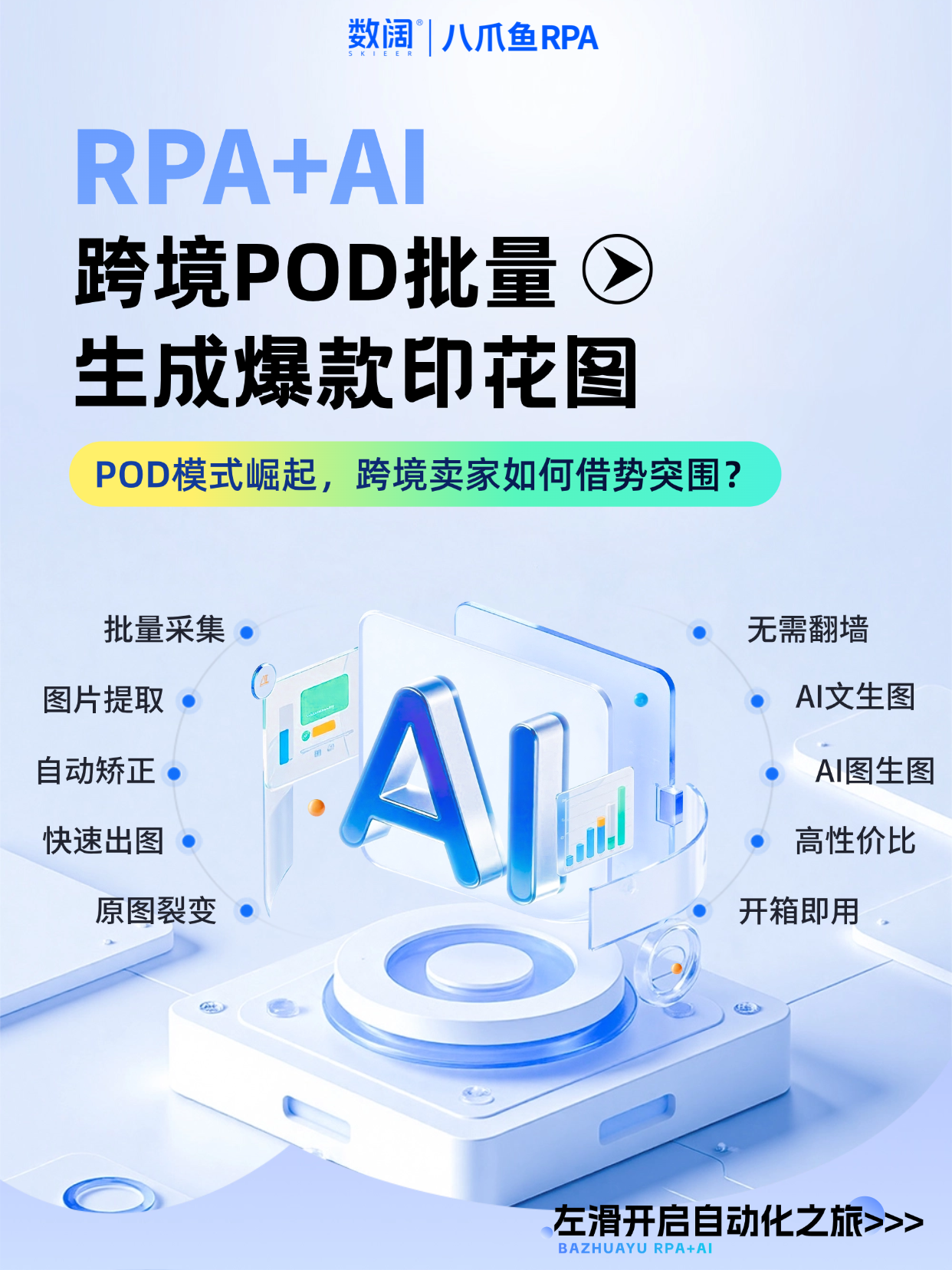 💡 救星来了!八爪鱼开发者洪老师打造的「POD批量生成爆款图」自动化应用,正是为解决这些痛点而来!从爆款素材捕捉到创意落地出图,全流程自动化衔接,新手也能快速上手,助力卖家低成本、高效率批量产出合规爆款图。