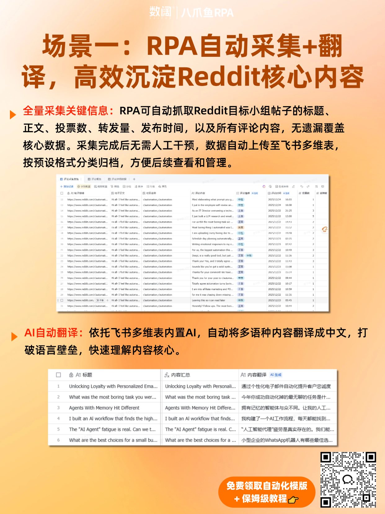 🙋扫码立即免费领取【飞书多维表格模板 + 八爪鱼RPA应用】,轻松开启Reddit高效出海运营,抢占全球营销先机!