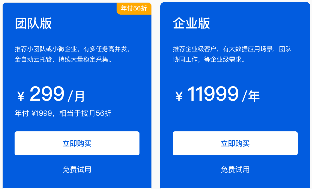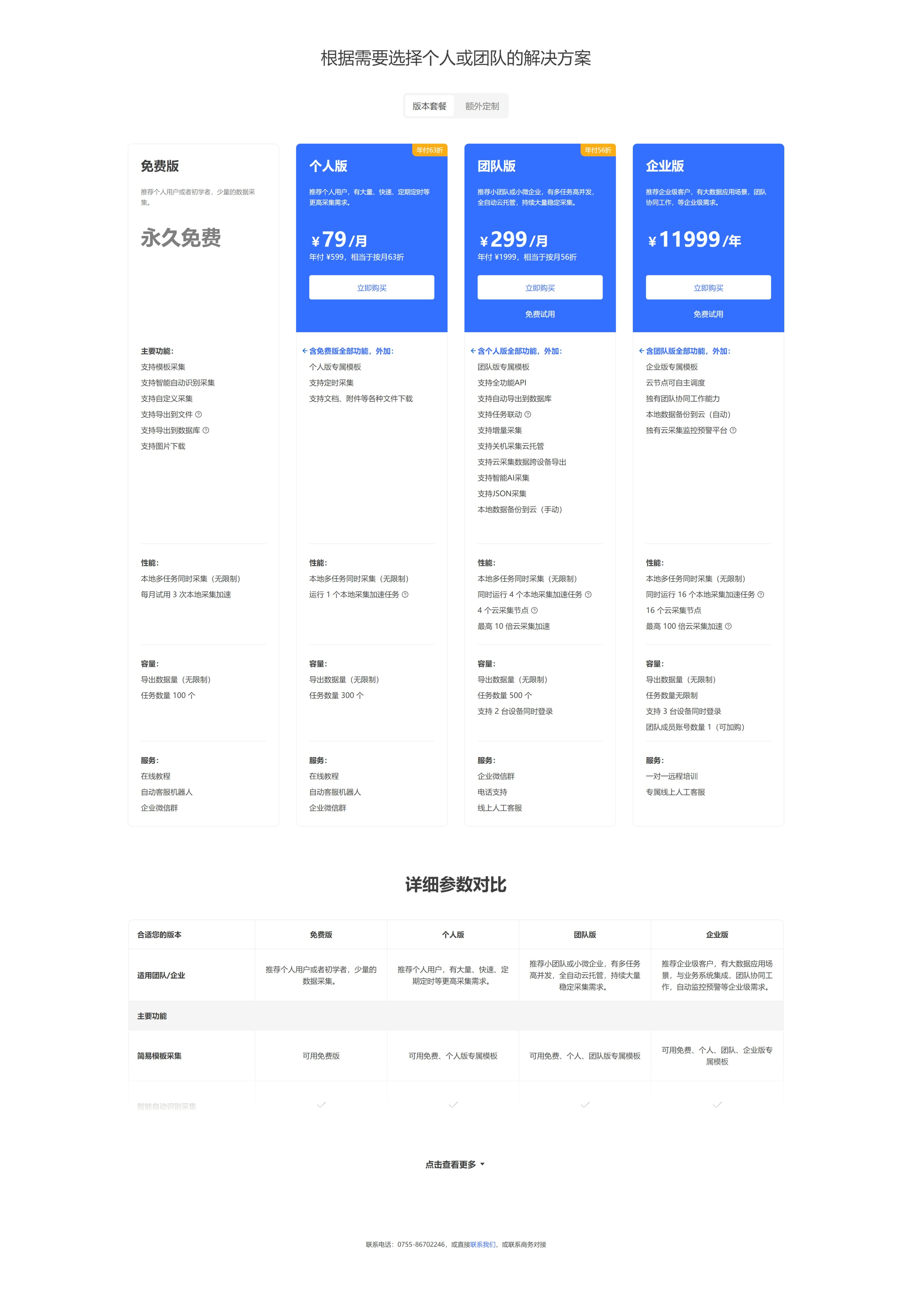 用户可以根据自身实际需求购买,更具针对性和人性化。不论是团队临时需求还是更深层的企业采集需求,均可以通过标准套餐+叠加包的形式灵活实现。